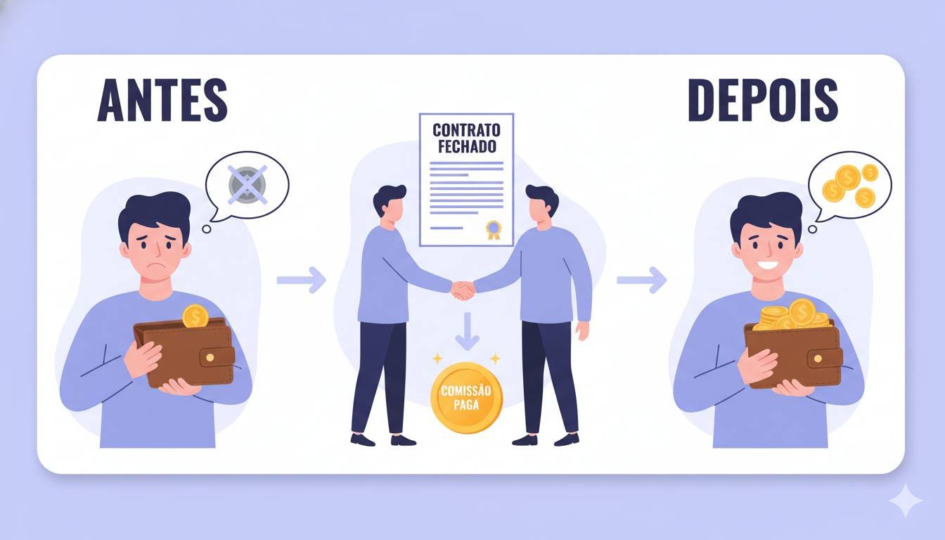 Porque você transforma sua rede de contatos em renda real — sem precisar de conhecimento técnico, sem riscos e com comissões imediatas + ganhos recorrentes.